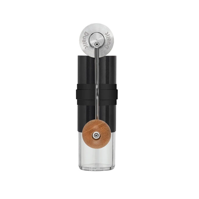 De Dualit koffiemolen is gemaakt van zwart kunstof met een conisch roestvrij stalen maalwerk en een eikenhouten grip. De molen is instelbaar in 40 verschillende standen en gemakkelijk uit elkaar te halen. De molen is 18 cm hoog en met een gewicht van 0,5kg makkelijk maar veilig te hanteren. Gebruik de koffiemolen om kleine porties verse koffie te malen, bijvoorbeeld voor slow-coffee met de Dualit Pour over Kettle of om zout, peper of suiker te malen.